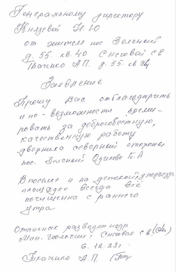 С уважением, старшая по дому Нежута Н.К, Хренова Л.Д., Гузеева Н.Н. и все жильцы подъезда №3.